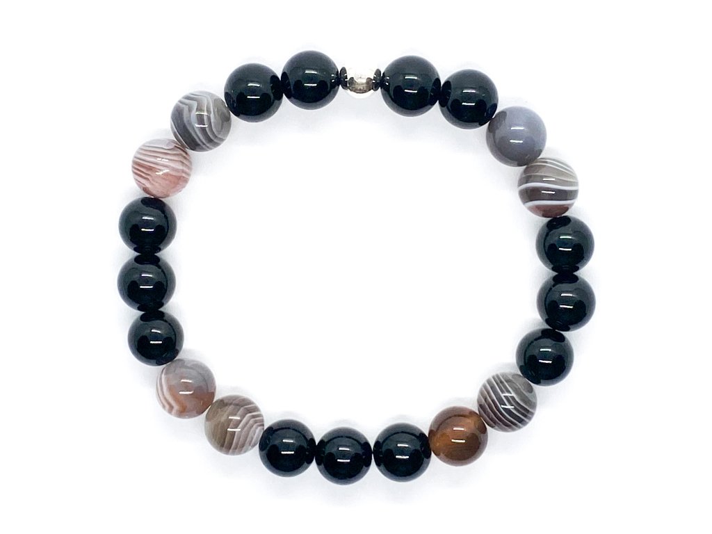 Dámský korálkový náramek - achát botswana, černý lesklý achát, korálek Morinetti